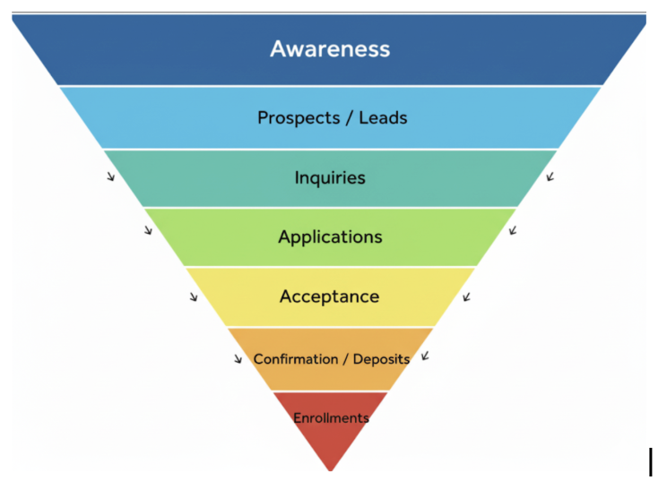 It is important to note that bottom of funnel problems, such as slow processing of admissions, lack of contact, or continually selling the benefits of the university, interview experience, might result in students not continuing. This gap and missed opportunities is impossible to track because it is invisible.