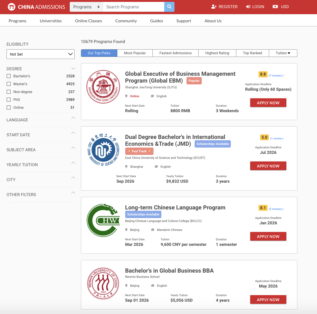 China Admissions is an online platform and a helpful resource for students to research, find information and research about programs.