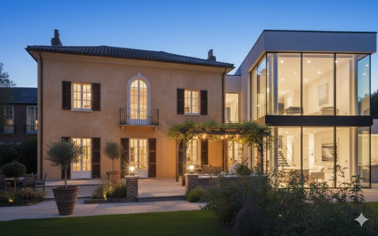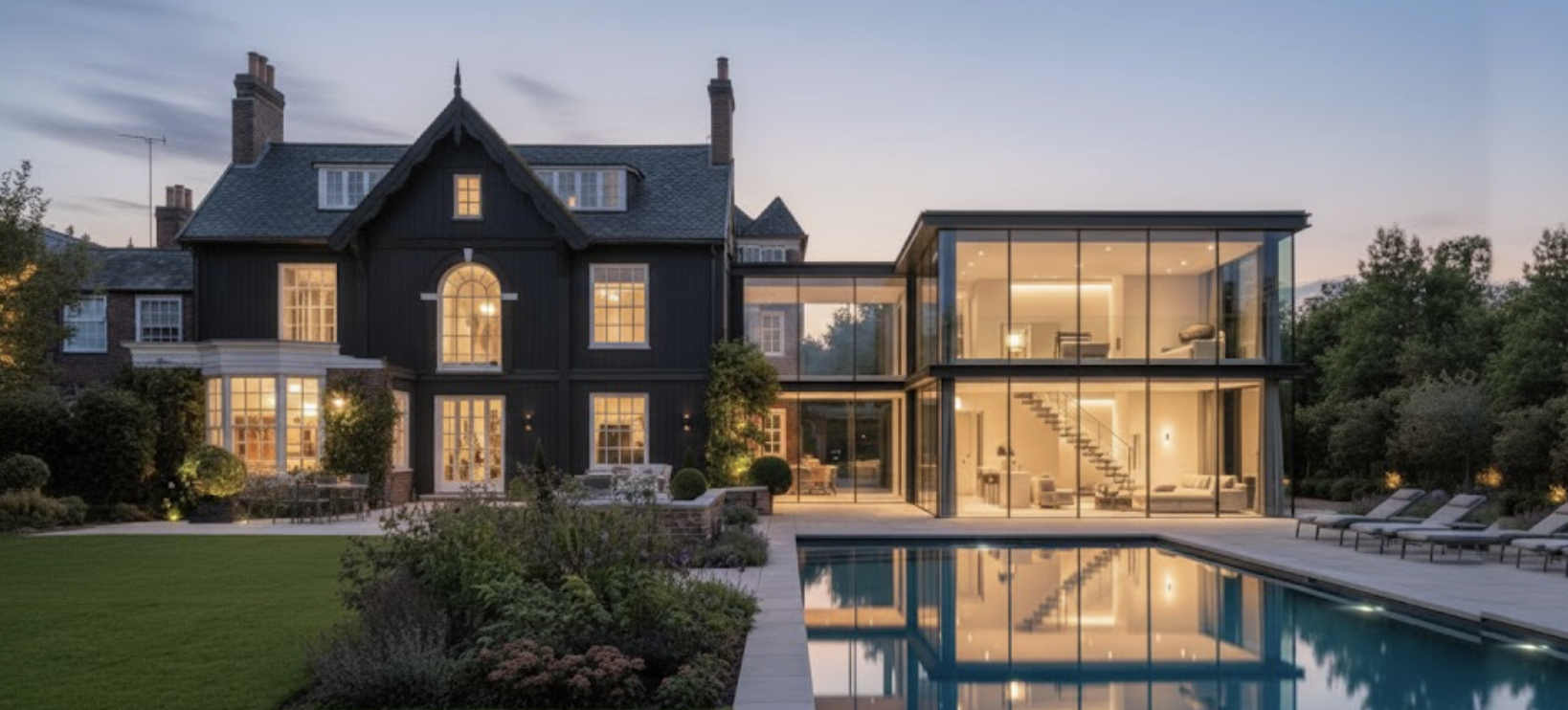 The advantage of the transitional style and one of the reasons it is growing so fast is that it can be created by extending traditional properties and adding a modern section to it.