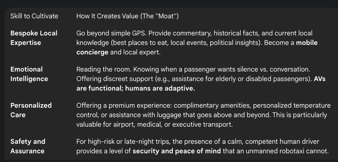 The advantage taxi drivers have now is that they have huge amounts of time that they can listen to educational content to upskill and prepare for this.