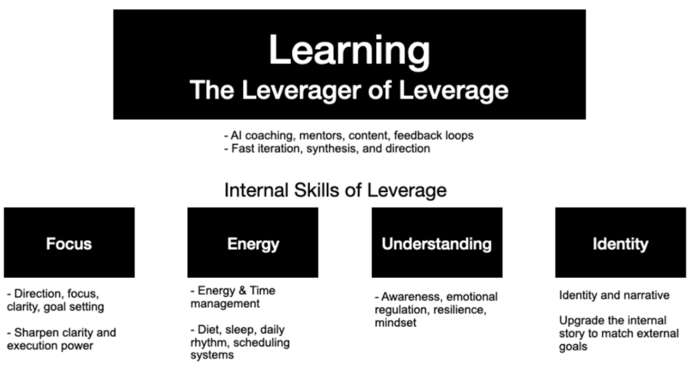 We also have internal skills of leverage. Learning becomes the master leverage which enables you to bootload all the others.