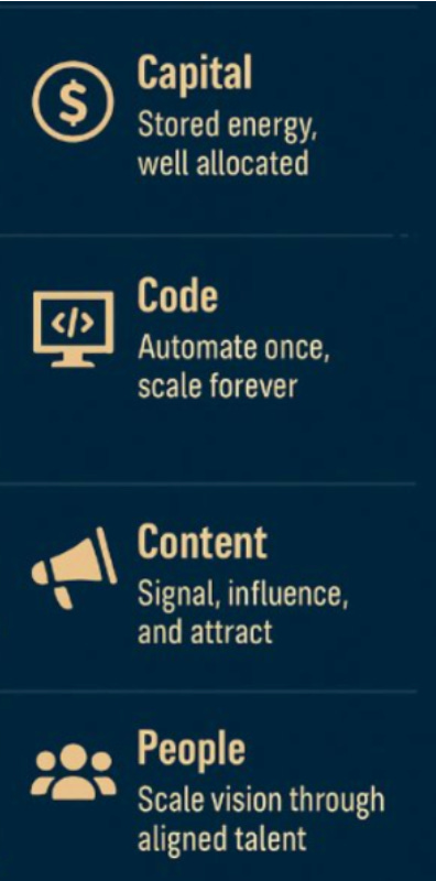 We’re now in a leverage economy - content, code, capital, people. It you can master these tools - you can put in a little effort, and see huge results.