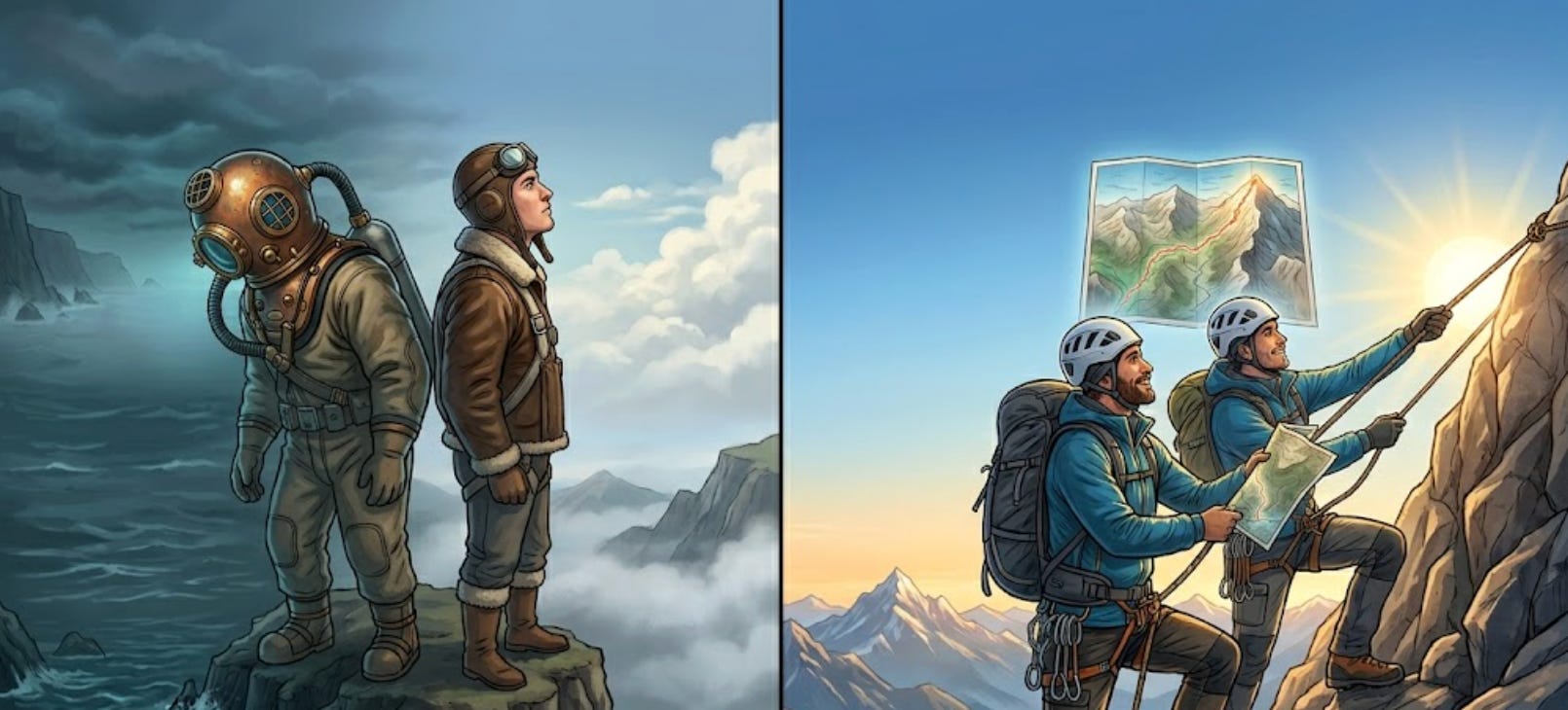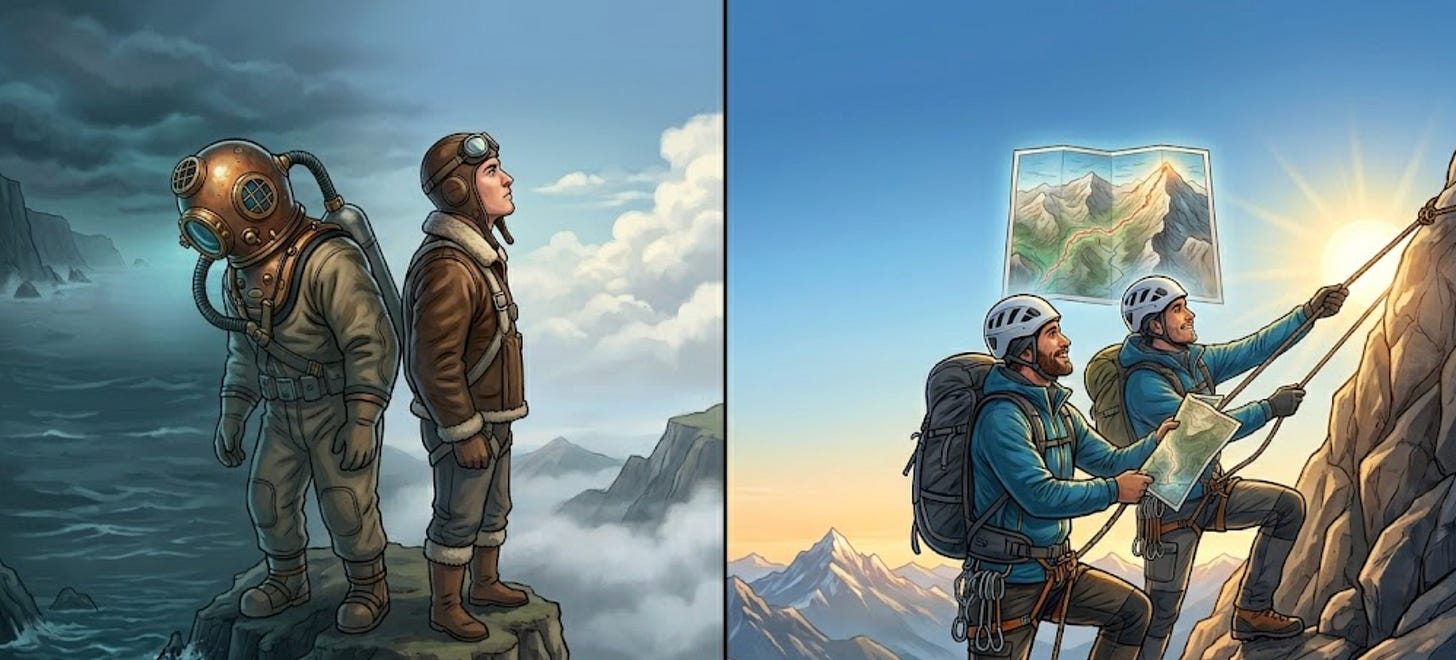 Exposure to very different contexts and environments - travel, different industries, different cultures. Forces your world model to update in ways comfortable environments never will.